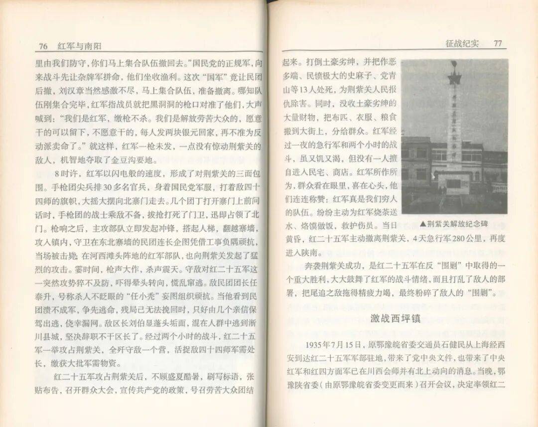 2006年,在举国上下隆重纪念中国工农红军长征胜利七十周年之际,由中共南阳市委党史研究室精心组织编撰的《红军与南阳》一书正式付梓出版。该著作系统梳理南阳丰富厚重的红色历史资源,在重要历史节点上适时开展地方党史宣传教育;立足深化广大干部群众对长征精神的理解与认同,着力传承革命先辈的光荣传统与崇高理想信念;充分发挥党史部门专业研究优势,为全市人民提供了宝贵的精神滋养。