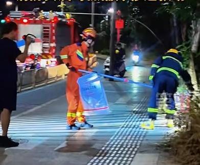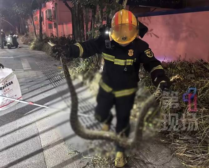 我们目测了一下,蟒蛇的重量大概二十斤、两米多长。目击群众说它被车辆碾压,尾部受伤。后来我们打电话,将其移交给动物保护中心协会处理。