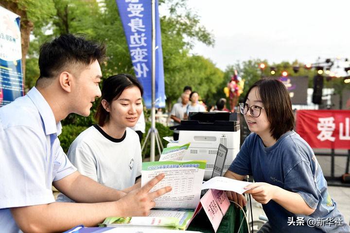 2025年8月25日,在山东省滨州市惠民县孙武广场,人社局的工作人员向市民介绍社保证明查询相关服务。新华社记者 郭绪雷 摄