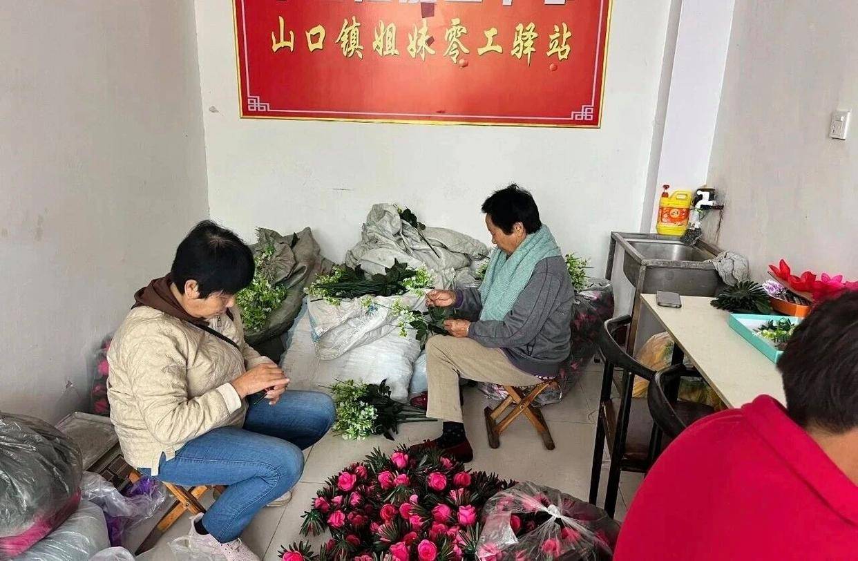 针对农村妇女“顾家难增收、想干没门路”的现实痛点,山口镇妇联立足民生需求创新服务载体,依托村妇联主席家的闲置空间搭建便民就业平台。驿站不仅提供免费手工加工场地,更精准对接周边玩具厂、饰品厂等企业,承接串珠、布艺、手工编织等技术门槛低、时间灵活的加工订单,推行“随来随做、按件计酬”模式,让妇女们实现“顾家挣钱两不误”。