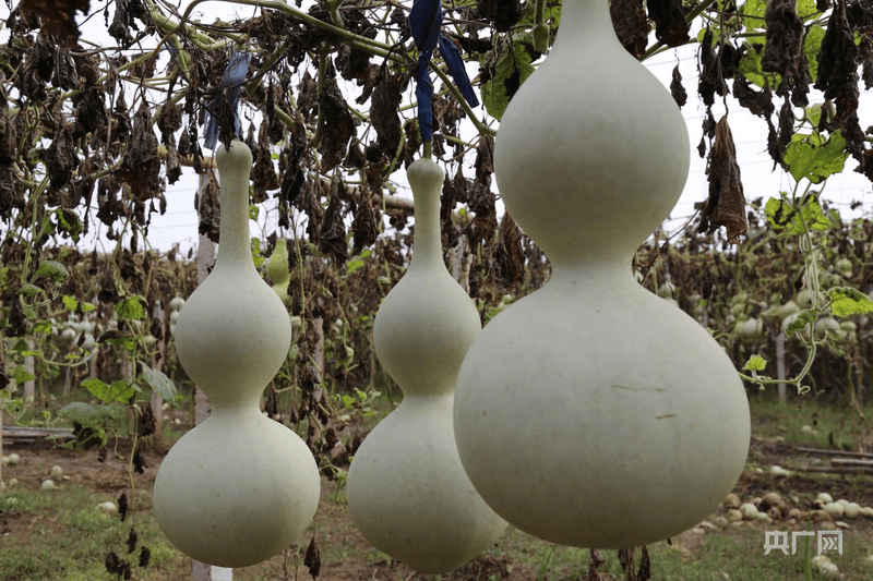 村民们在葫芦园里采摘成熟的葫芦(央广网发 韩田田 摄)