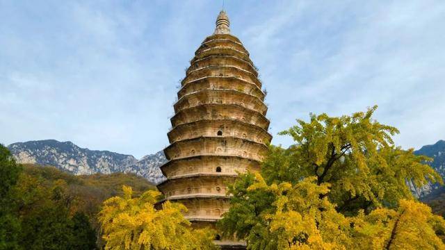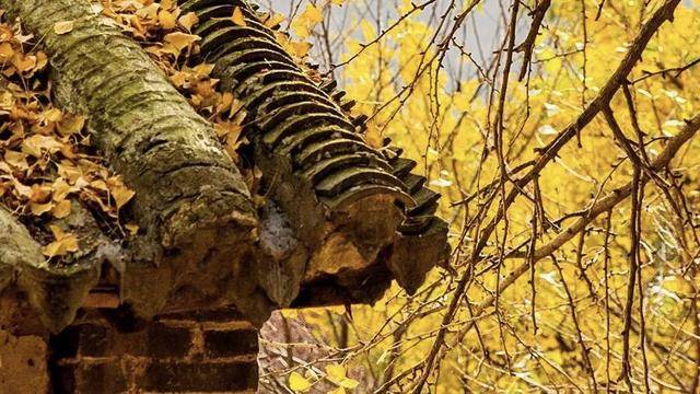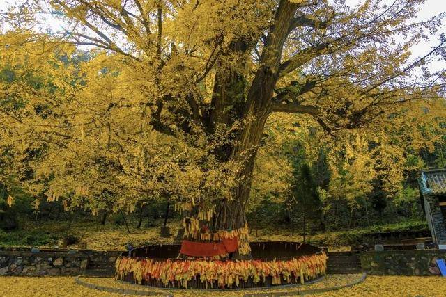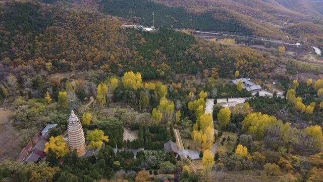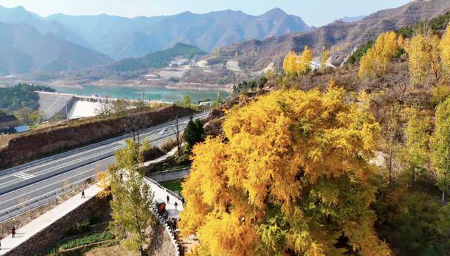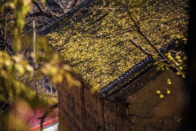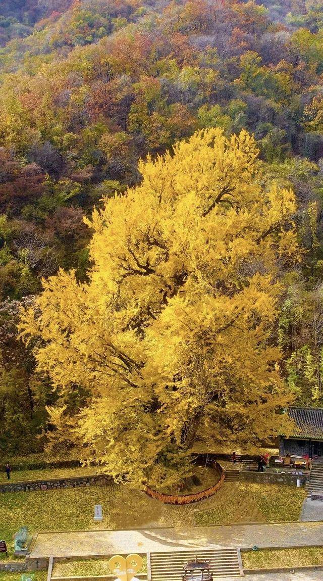 层层叠叠的山峦被秋风染成金黄色的银杏叶