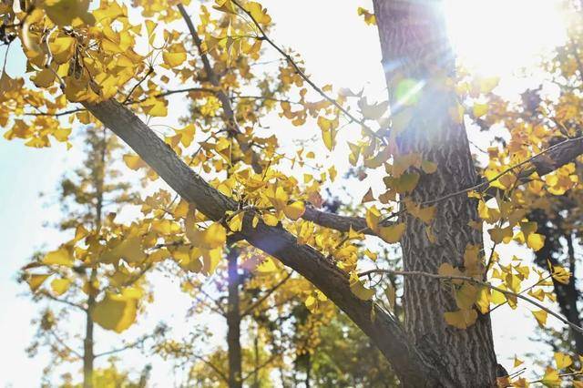 遮天蔽日的银杏叶笼罩出一个金灿灿的世界