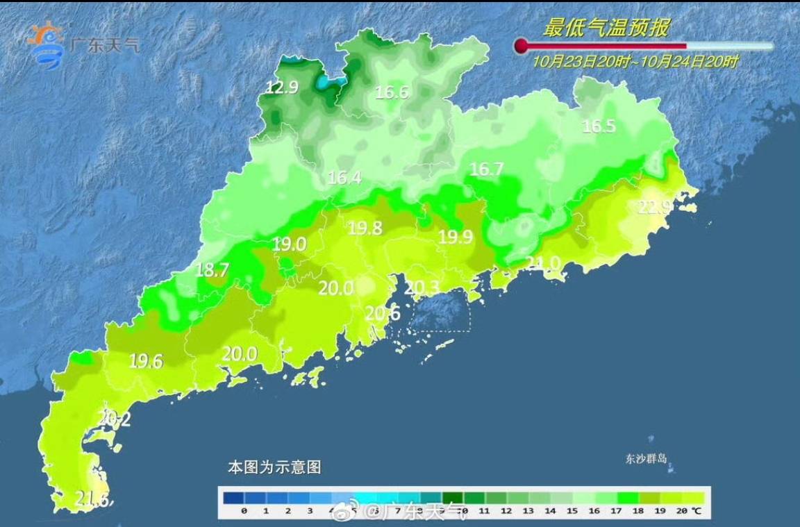 具体来看,22日,南部沿海市县多云到阴天,有分散小雨,其余市县多云,局部有零星小雨。最低气温:粤北、肇庆北部、云浮西北部市县12℃—15℃,南部沿海市县18℃—21℃,其余市县15℃—18℃。