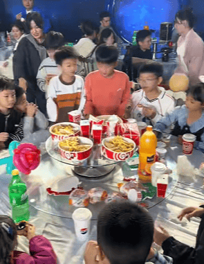 10月21日,视频拍摄者胡先生告诉潇湘晨报记者,此次酒席是参加朋友家小孩子的生日,给小朋友单独准备了两桌肯德基,桌面上摆满了汉堡、薯条、炸鸡、披萨,“小朋友吃的非常开心,坐在一起不哭不闹”,同时,胡先生也表示:考虑得太周到了,下次也这样做!