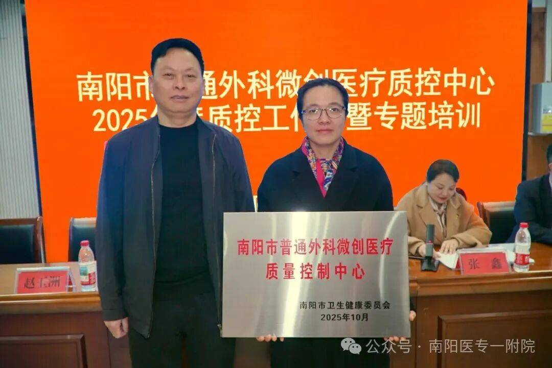 10月25日,南阳市普通外科微创医疗质量控制中心2025年质控工作会、专题培训会暨换届仪式在南阳医专一附院4号楼1楼学术报告厅召开。河南省肿瘤医院韩风、赵玉洲教授等省内权威专家,南阳市卫健体委三级调研员宋万新,南阳医专一附院副院长张鸥,南阳市普通外科微创质控中心主任委员王鹏等出席会议,全市各级医疗机构普外科及相关专业负责人、业务骨干参会。会议由南阳市卫健体委医政科科长张鑫主持。