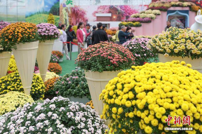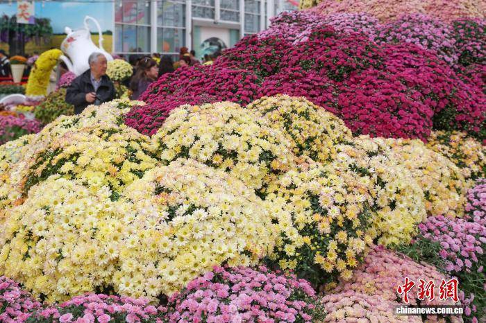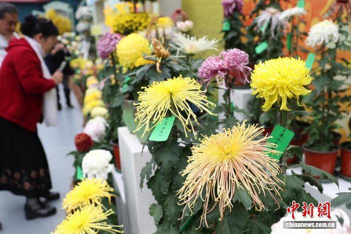 10月26日,南京农业大学湖熟菊花基地内,市民欣赏花型、花色各异的菊花。该基地保存着5300余份菊花种质资源,传统菊、园林小菊、切花菊、功能性菊花等3000余个品种,是全球最大的菊花种质资源保存中心和菊花基因库。中新社记者 泱波 摄