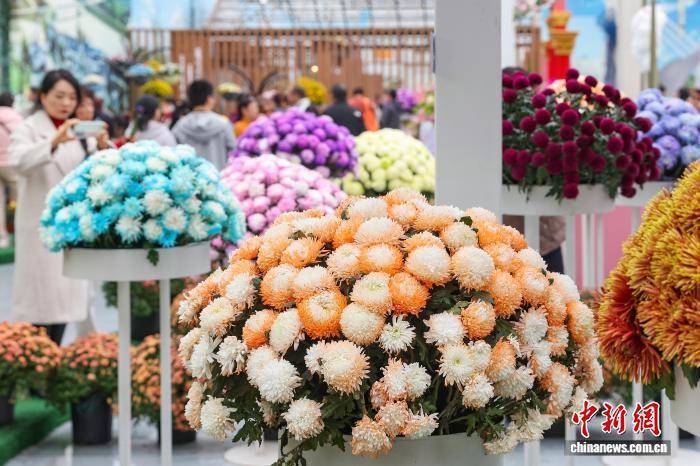 10月26日,南京农业大学湖熟菊花基地内,市民欣赏彩色菊花。中新社记者 泱波 摄