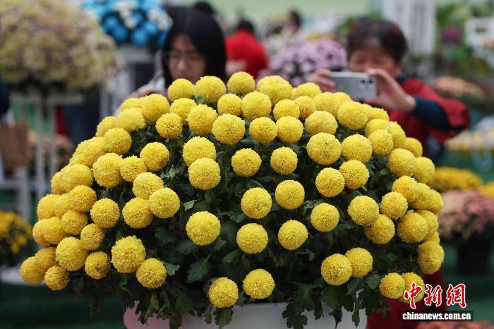 10月26日,南京农业大学湖熟菊花基地内,市民欣赏菊花。中新社记者 泱波 摄
