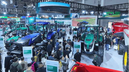 在拖拉机展区,作为潍柴雷沃智慧农业持续推进CVT拖拉机商业化应用的成果,雷沃340马力CVT系列智能拖拉机突破了无级变速等关键技术,可根据作业需求自动调整动力输出,实现高效精准作业;雷沃M2004-5RP动力换挡拖拉机则彻底解决了传统离合器故障问题,通过电控按钮或推杆操纵,无需踩离合就能实现换向和电控操作,大大提升了操作便利性和作业效率。