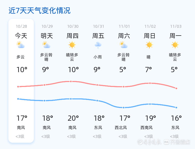 明日天气较今日有所变化,预计为多云转晴,气温在9℃至18℃之间,南风风力维持在<3级。与今日相比,明日阳光将更为充足,适合户外活动。