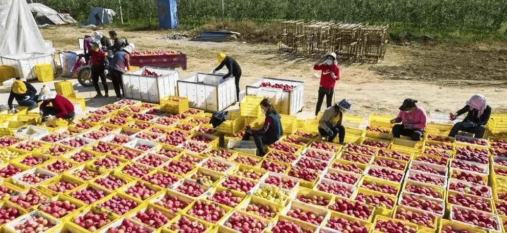 正宁县永和镇互帮果业专业合作社组织果农分拣苹果(正宁县融媒体中心供图)