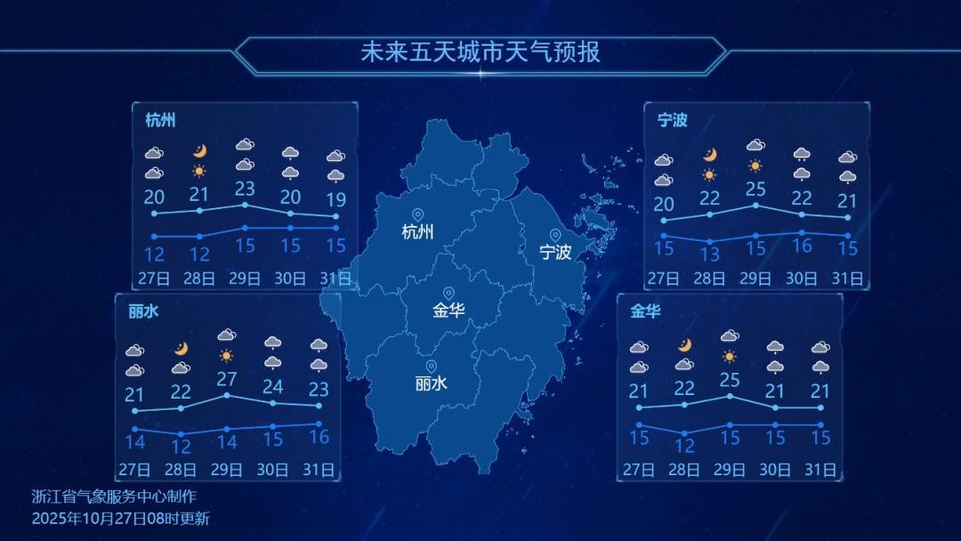 今天:浙南和沿海地区多云到阴,其它地区晴到多云。