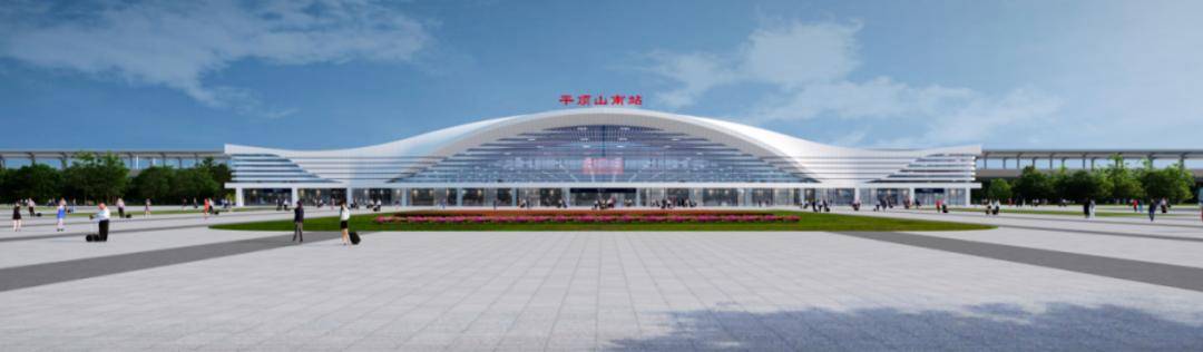 平顶山市因其市区北部的一座山顶无峰,平坦如刀削斧砍的山而得名。平顶山南站的车站整体造型设计灵感即源自其城市周边山势地形,建筑造型现代稳重简约,建筑立面的横向金属杆件寓意将白鹭洲的流水,为其赋予生机,也体现了虚实对比的美感。