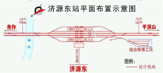济源东站:济源东站为本线中间站,主要办理旅客列车到发、通过及旅客乘降等业务,车站距济源市中心7.2km,规模为2台6线(含2条正线)。