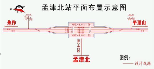 孟津北站:孟津北站为焦平铁路中间站,位于孟津区东南侧冶戌村,距离孟津城区中心18.2km,距离孟州城区中心 14.6km,北邻世纪大道,南邻黄河大道,东邻 G208。