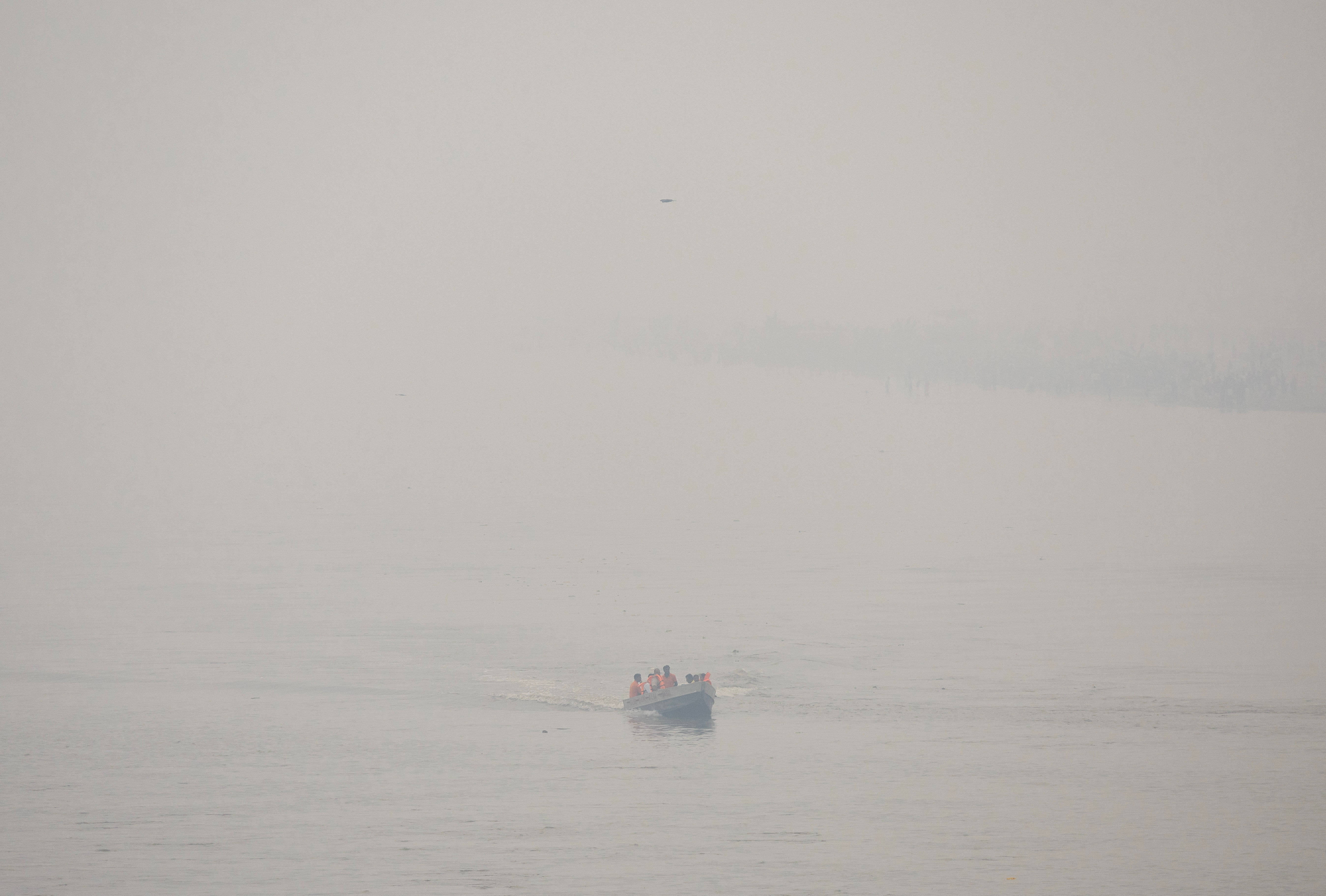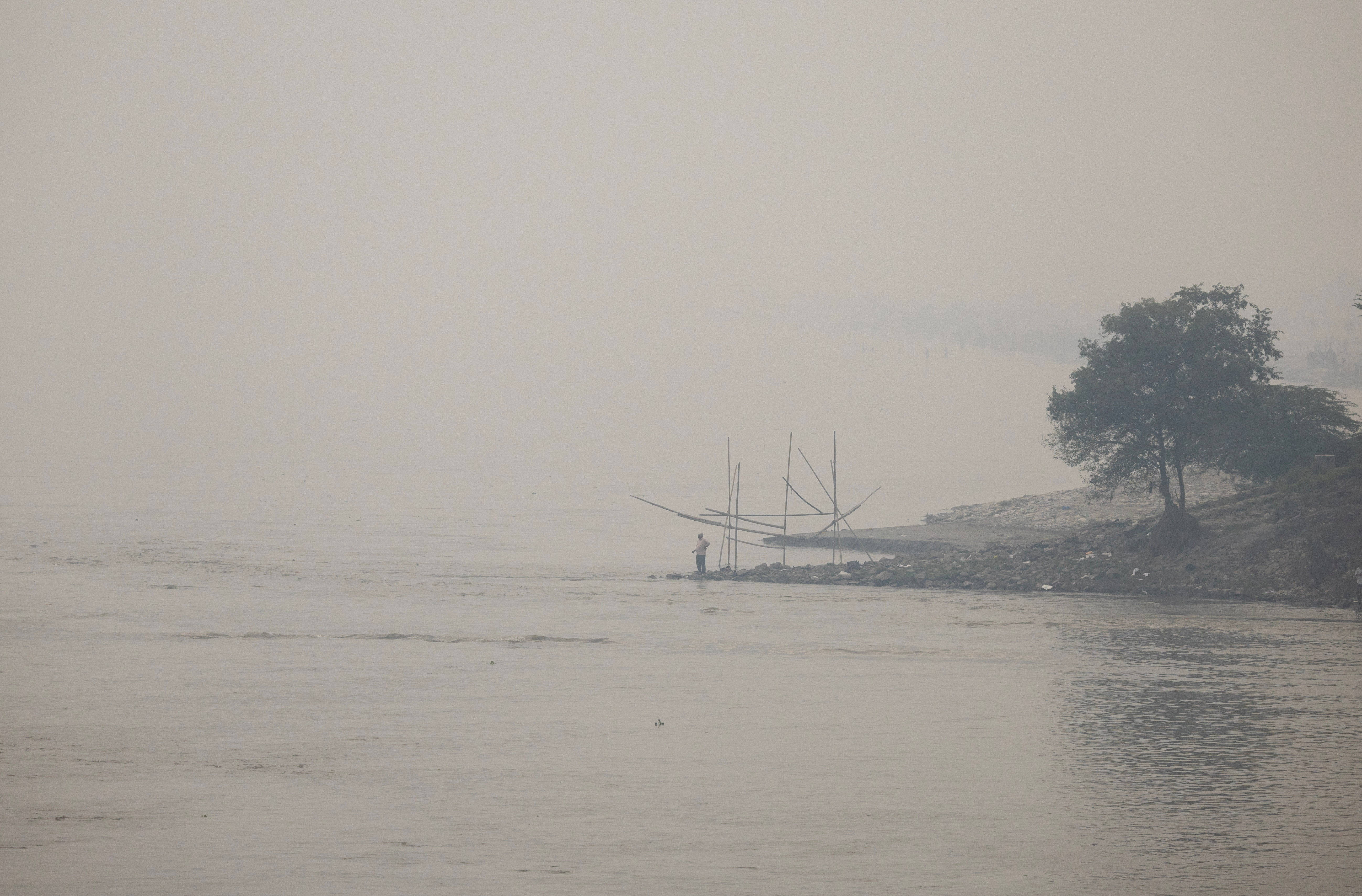 10月28日,在印度新德里,亚穆纳河上雾霾笼罩。 新华社/路透