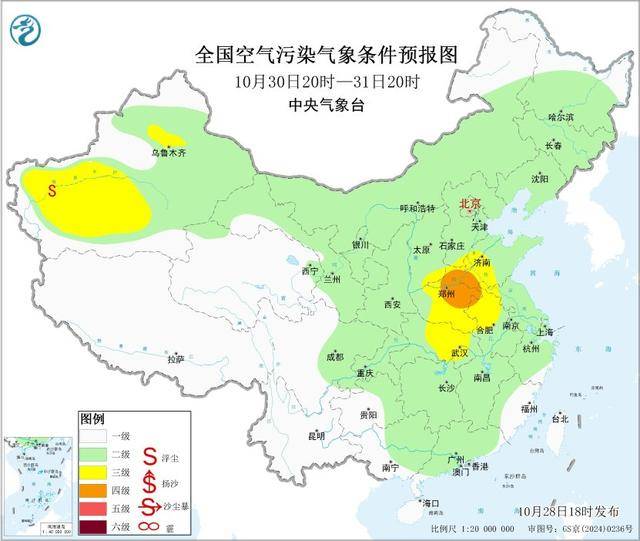 28日夜间至29日,华北中南部、黄淮西部大气扩散条件转差,有轻至中度霾,部分地区有重度霾,30日,受冷空气影响,上述地区霾天气自北向南逐渐减弱或消散。