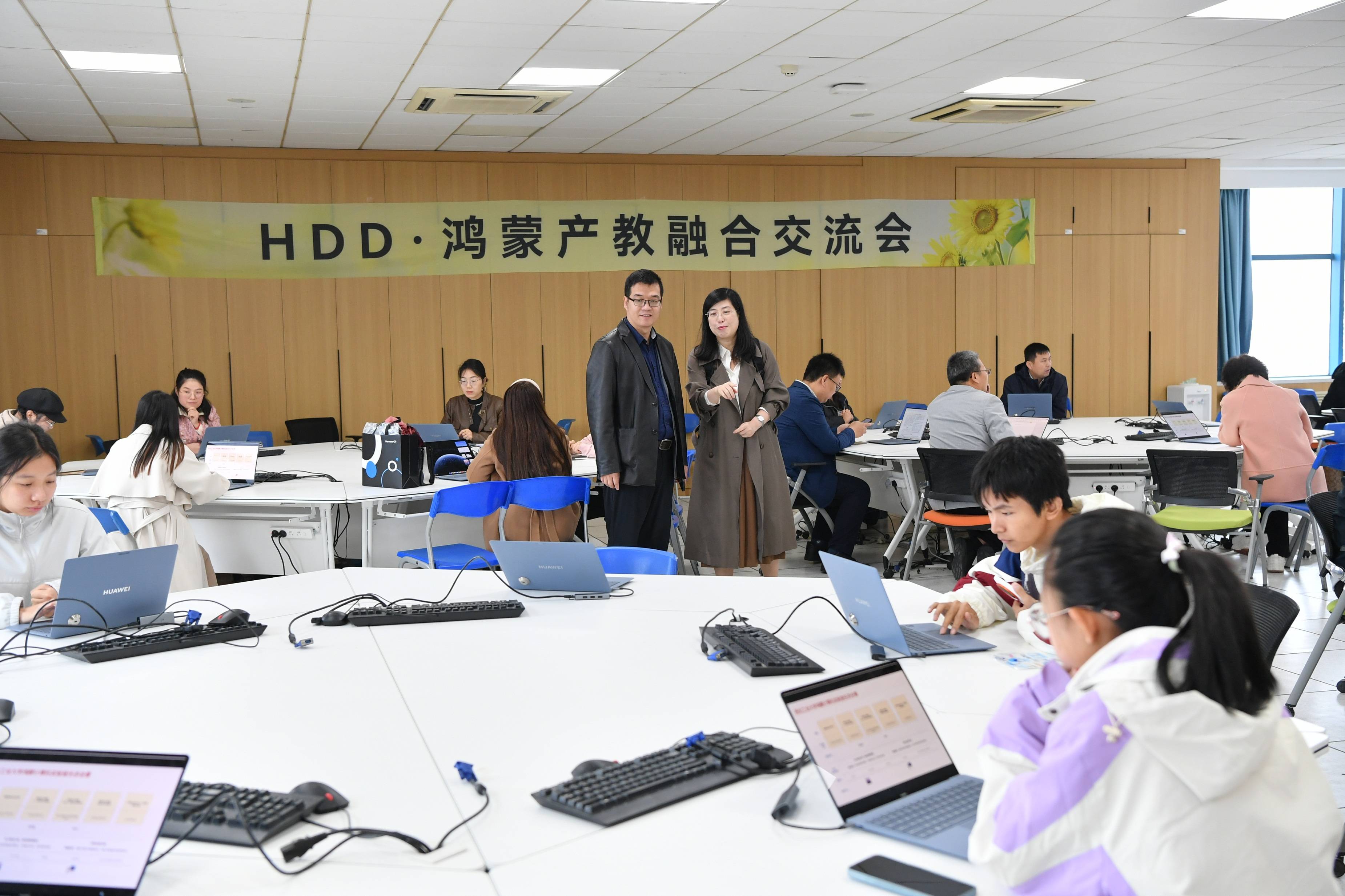 会议期间,代表们参观了计算机学院与华为共建的全国首个鸿蒙电脑教学实验室,对设备体验区进行了现场互动与交流,进一步加深了对鸿蒙生态在教育领域应用潜力的理解。