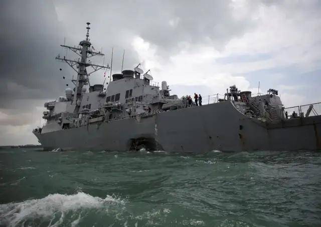 先是2017年8月,美国“麦凯恩”号驱逐舰擅自闯入中国南海美济礁12海里内,11天后在马六甲附近与一艘油轮相撞,船身被撞出一个大洞,10名美军死亡。