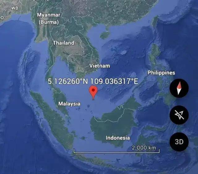 ▲五天前美军航母编队位置,当时正在驶入中国南海