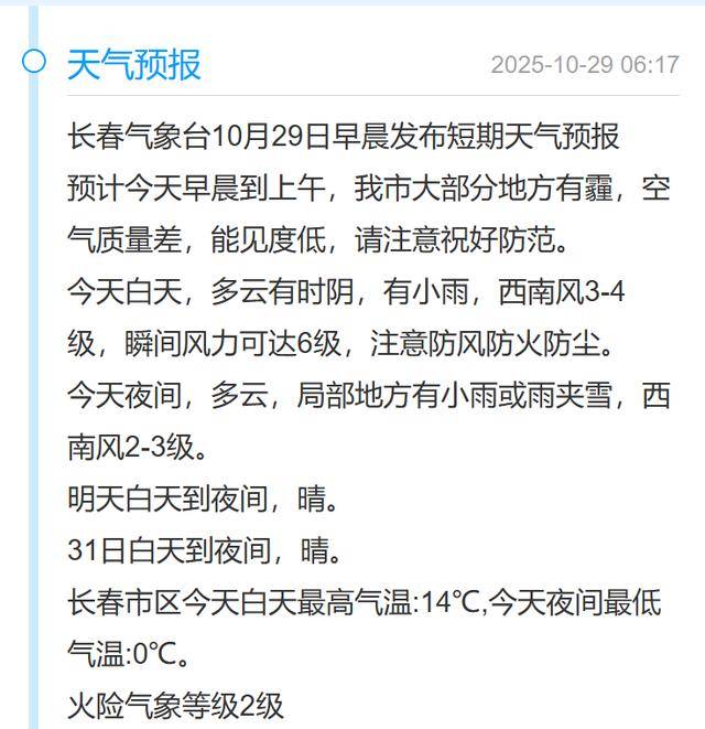 长春气象台10月29日早晨