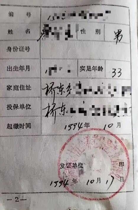 蔡先生回忆说,原本2021年11月就可以去领养老金了,但那些年他一直在外面打工,根本没有时间去领取,直到2024年9月中旬,回到老家后他带着身份证和30年前的那个缴费红手册,来到桥东镇便民服务中心领养老金,工作人员告诉他说那个养老金早已取消了,现在领不到了。