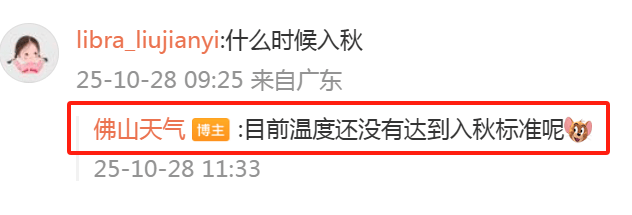 今天(10月29日)佛山气象台明确:目前我市还没有达到连续5天的5日滑动平均低于22℃的入秋标准, 23到26日我市连续4天5日滑动平均气温低于22度,但27日滑动平均气温在22度以上(我市常年入秋时间11月10日)。