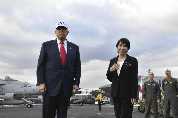 ▲特朗普和高市早苗抵达驻日美军基地
