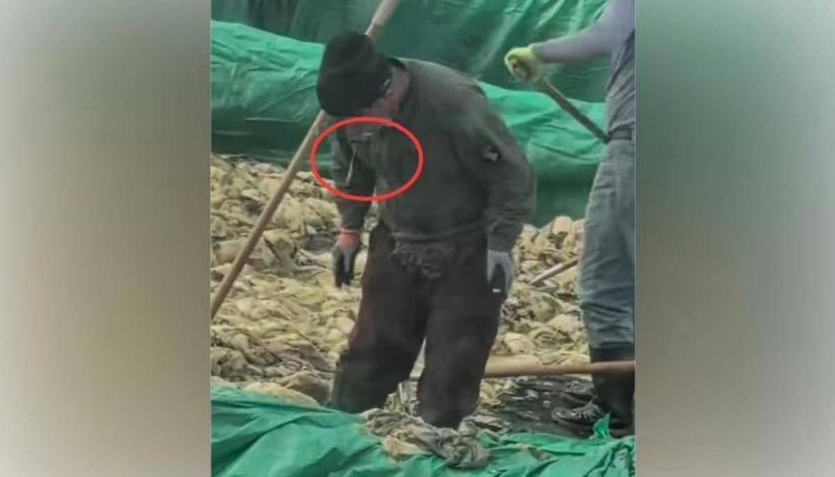 男子在疑似酸菜的生产车间中吐痰(图源:网络视频截图)