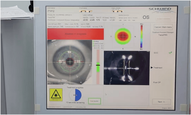 南阳孔明眼科首例老视手术患者46岁,长期电脑前高强度用眼,双眼近视大于500度、散光大于200度、双眼老花眼、约100度,看远需要戴近视镜,看手机、看电脑屏幕需要频繁摘掉眼镜,已经明显干扰到正常工作和生活。在了解到千频阿玛仕迈可视老视矫正手术后,来到南阳孔明眼科医院寻求帮助。患者有需求,孔明眼科医院有办法,景聪荣与主任医师张君苒联合会诊,带领医、护、技专业医疗团队,为患者进行全面眼部检查、数据精准采集,通过眼镜适应性试戴、AI屈光大师手术进行个性化手术方案模拟设计、双眼高阶像差选择性消融、右眼引入负球差微米级精准老视矫正,最终手术方案顺利敲定。