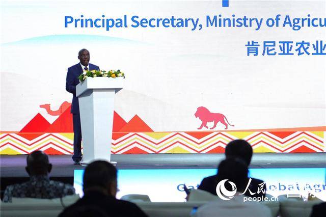 肯尼亚农业与畜牧发展部常务副部长保罗·基普罗诺·罗诺致辞。人民网记者 黄炜鑫摄