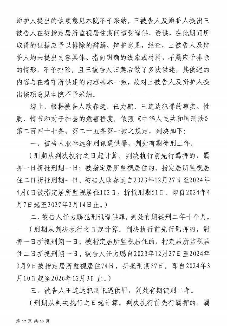 石家庄市公安局裕华分局的3名涉案民警,均被认定构成刑讯逼供罪。其中,耿春远被判刑三年,任力鹏、王连达分别被判刑二年十个月、二年。