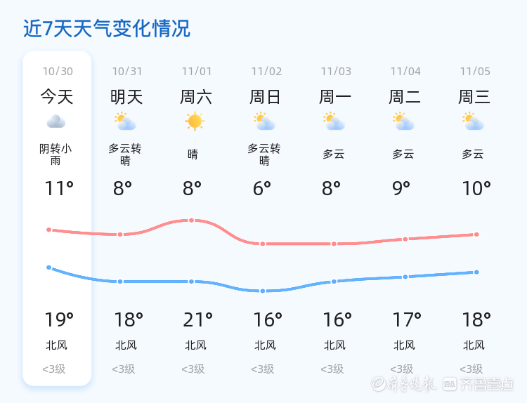 未来三天(11月1日至11月3日),菏泽市天气将以晴到多云为主,最高气温可达21℃,最低气温8℃。其中,11月2日和3日可能出现小雨天气,建议市民及时关注天气预报,提前做好出行计划,特别是雨天出行时需注意交通安全。