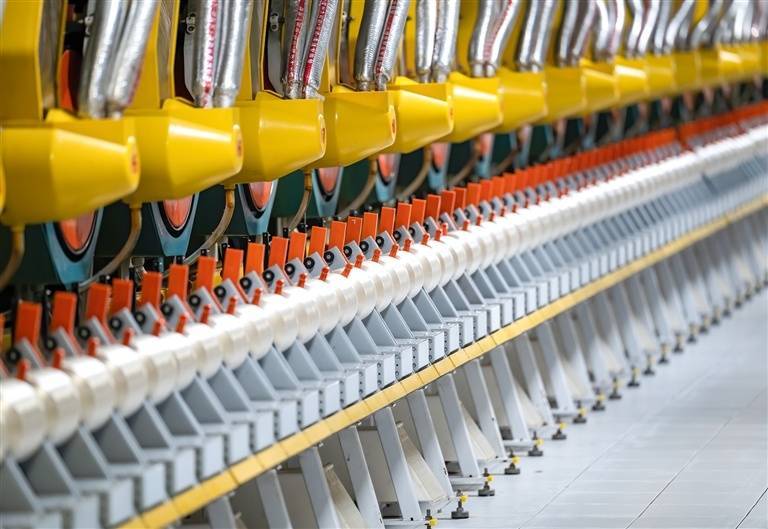 新乡化纤车间内机器正在运转。