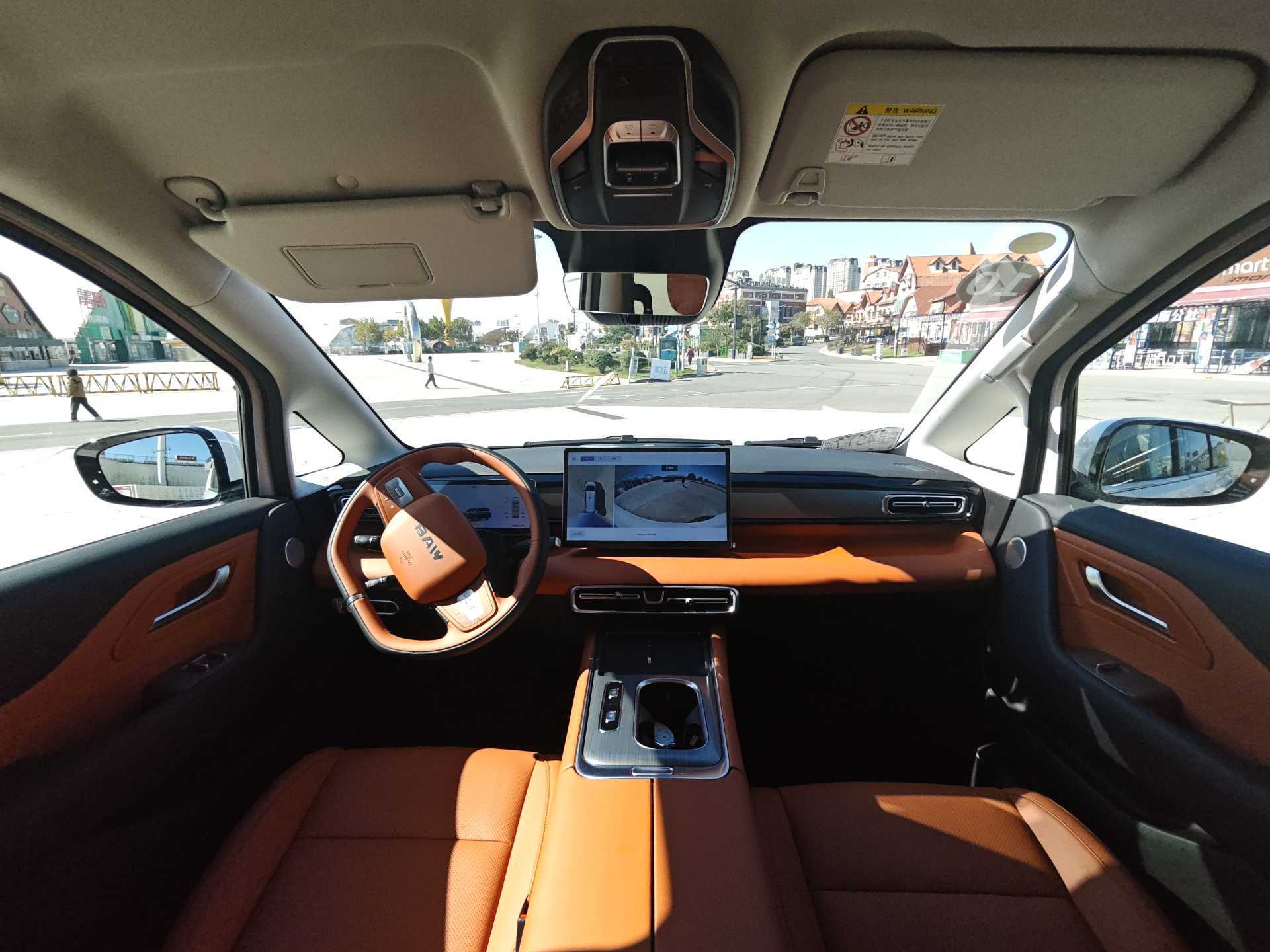 坐进前排,主副驾也拥有和第二排一样的座椅功能,因为锐胜M8采用了怀挡的设计,因此中控这里拥有更多的空间,浮岛式设计使得下方可以中控台支持50W无线快充,车机屏幕为14.6英寸1080p分辨率屏幕,芯片为骁龙8155,支持360影像等功能,