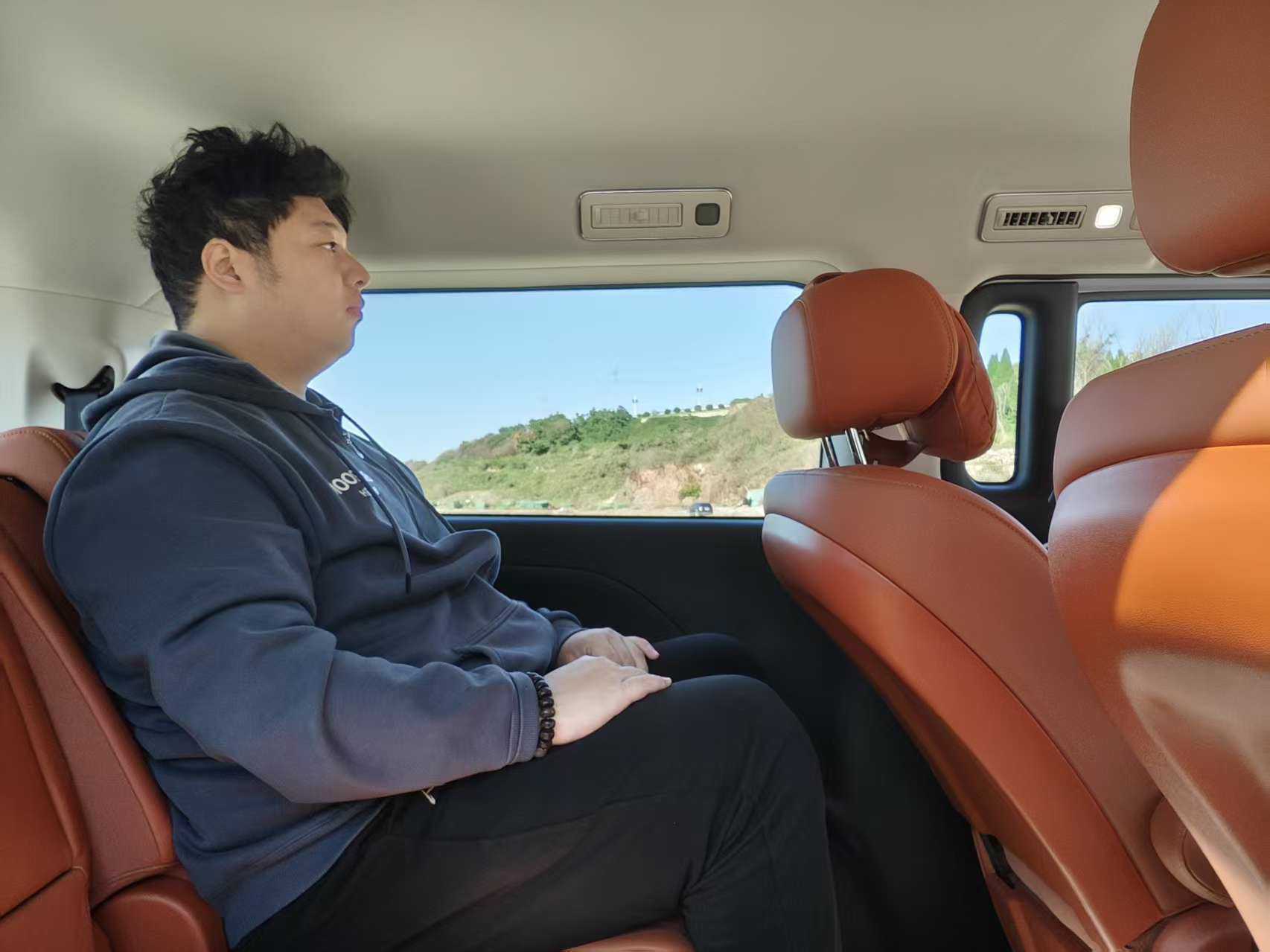 坐进车内,最大的感觉就是锐胜M8真的非常大,3200mm的轴距让第三排的空间非常客观,610mm的腿部空间和480mm的坐深使笔者这样身高183cm,体重230斤的大块头坐进去也是绰绰有余。同时第三排还有隐藏扶手功能,放下后的坐乘体验直逼SUV后排。