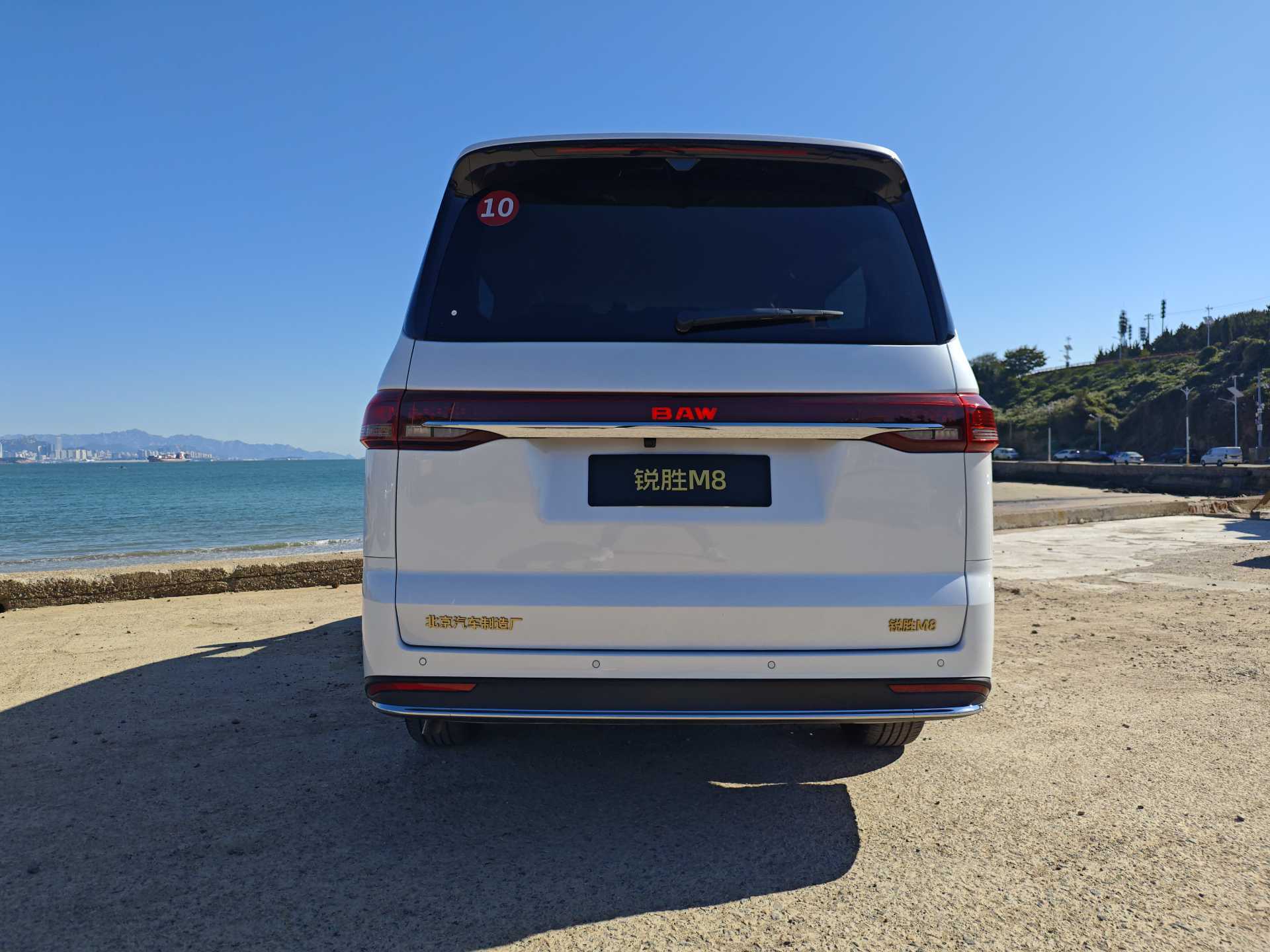 来到车尾,贯穿式尾灯和品牌标志BAW融为一体,好看协调,且拥有动态迎宾灯效;上方则为高位刹车灯,上下灯呼应的同时,在夜晚点亮对后车也有更好的提示效果。