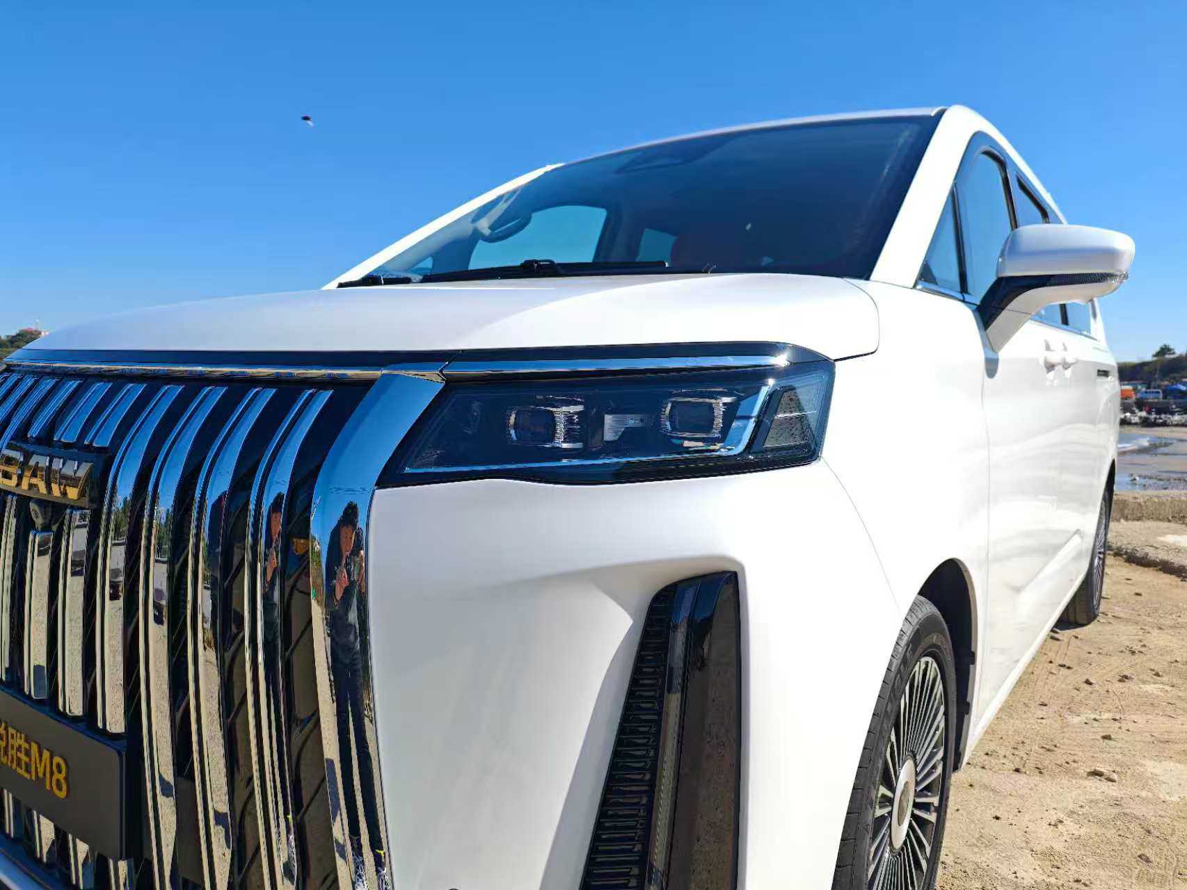 第一眼看到锐胜M8,你就能清晰地认出,这款车是商务MPV,车前脸的设计语言与山水相融合,进气隔栅采用了直瀑式的设计,飞流直下的镀铬饰条给人一种庄重的感觉;分体式大灯的名字叫做霞光大灯,最远照射距离可达230m,真·如霞光一般绵长。