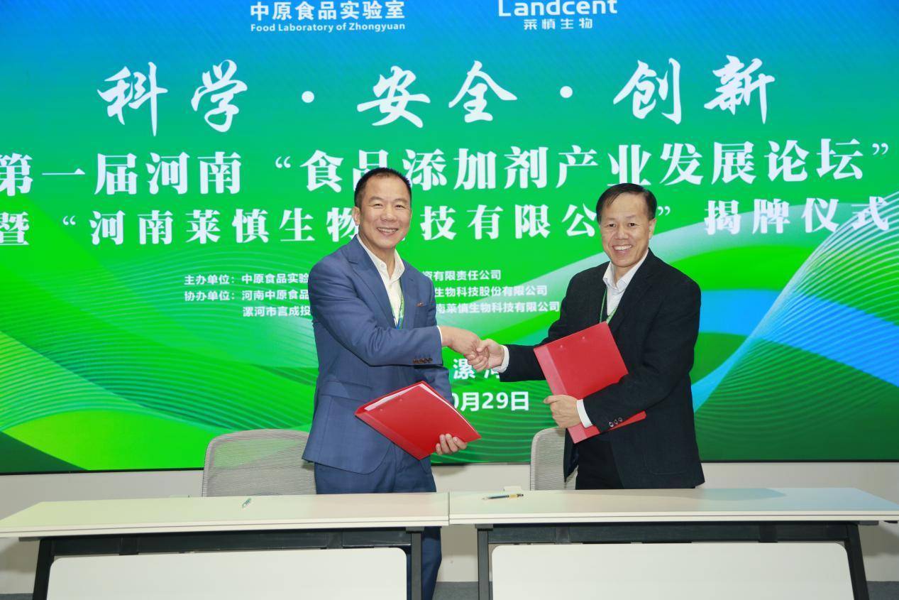 10月29日,第一届河南“食品添加剂产业发展论坛”暨“河南莱慎生物科技有限公司”揭牌仪式在中原食品实验室举行。漯河市国有资本投资有限责任公司董事长张珂、中原食品实验室副主任陈历水出席并致辞,上海莱慎生物科技股份有限公司董事长林华利出席并进行行业分享。