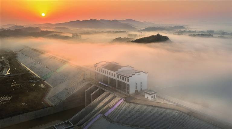 生态之肾,点“靓”家园。随着水库开始蓄水,一个烟波浩渺的人工湖将逐渐形成。它与周边的山林田园相映成趣,构成一幅秀美的山水画卷。水库通过调节径流,能改善下游河道生态环境。未来,围绕水库打造的湿地公园、生态保护区,将极大提升区域生态环境质量,为发展生态旅游、康养产业创造得天独厚的条件,真正实现“绿水青山”向“金山银山”的转化。