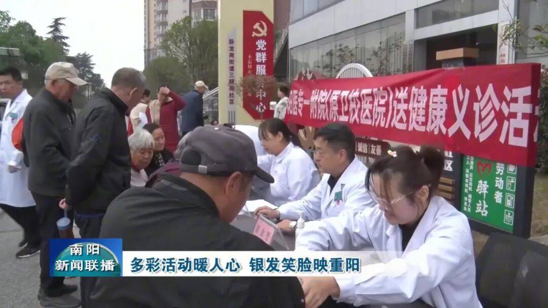 重阳节当天,卧龙岗街道三顾苑社区里热闹非凡,南阳医专一附院的脑血管、心内科、疼痛科及中医专家团队现场坐诊,耐心解答老人健康疑问,还送上香甜的重阳糕。