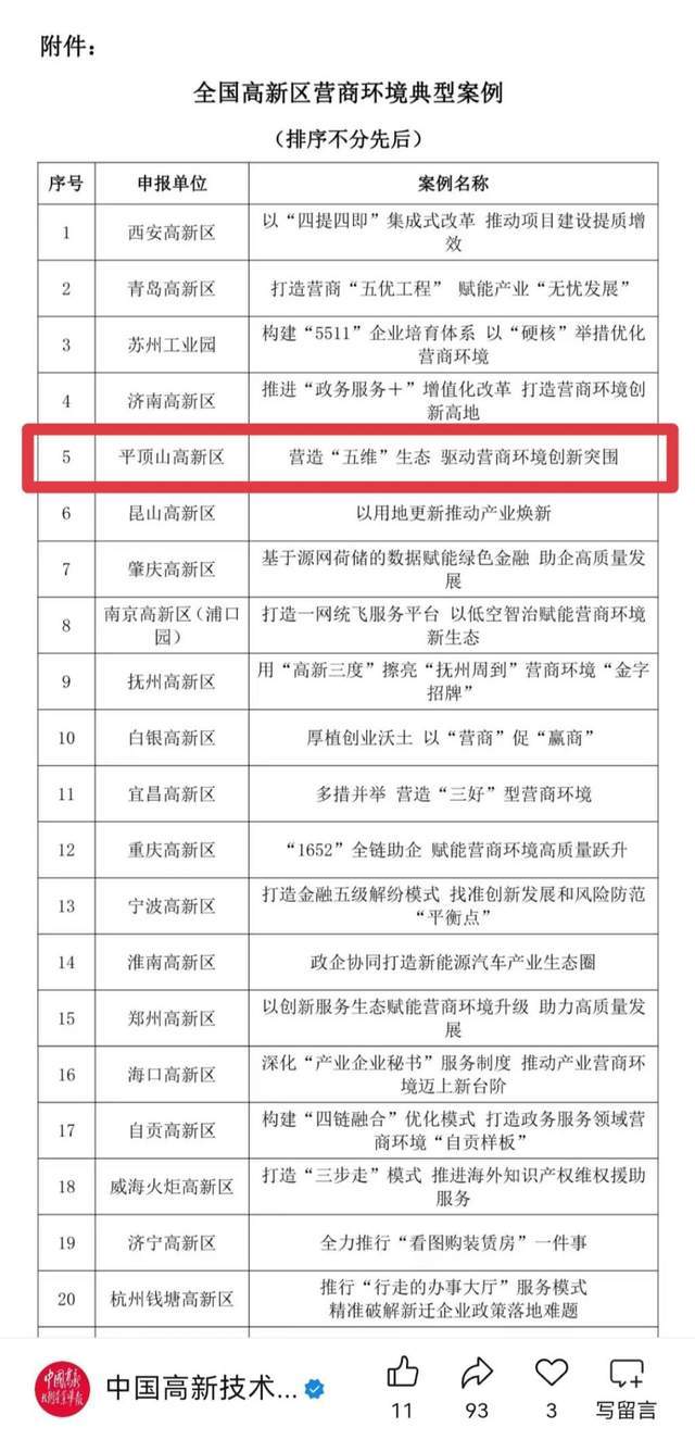 平顶山高新区报送的《营造“五维生态”驱动营商环境创新突围》案例,凭借其体系化的创新设计,以实践成效与强辐射的可复制价值,成功入选《全国高新区营商环境典型案例(2025)》,成为全国高新区营商环境建设的标杆范本,为行业发展提供了可借鉴、可推广的“平顶山方案”。