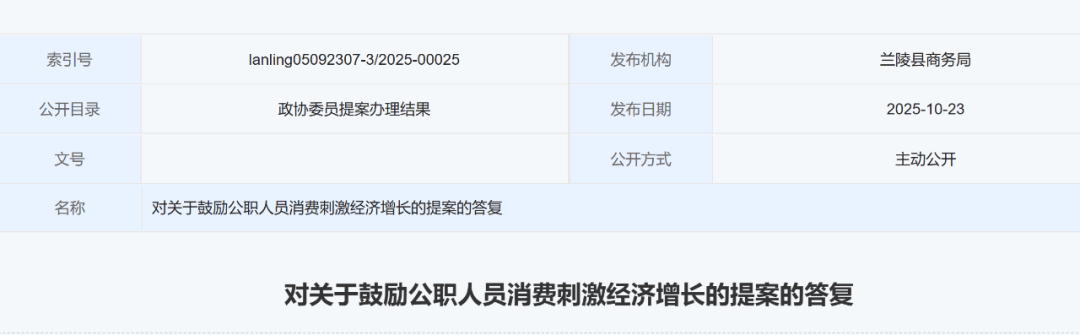 据山东兰陵县人民政府网站消息,近日,山东省兰陵县商务局就政协委员提出的“鼓励公职人员消费刺激经济增长”提案作出答复。