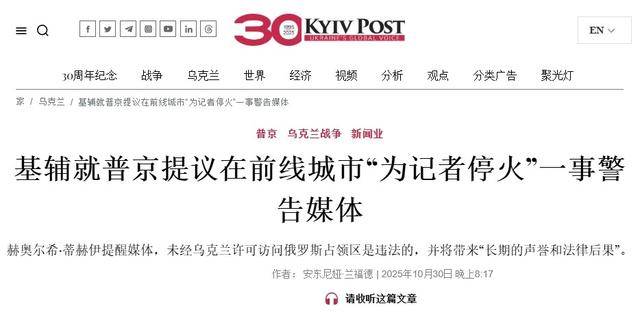 所以不出意外,乌克兰方面对普京的提议破防了。30日乌外交部发言人赫奥尔希·蒂赫伊“强烈警告”媒体记者不要相信普京的言论,并宣称未经乌方允许、擅自访问俄罗斯的占领区是“违法的”,由此引发的一切后果,乌方概不负责。