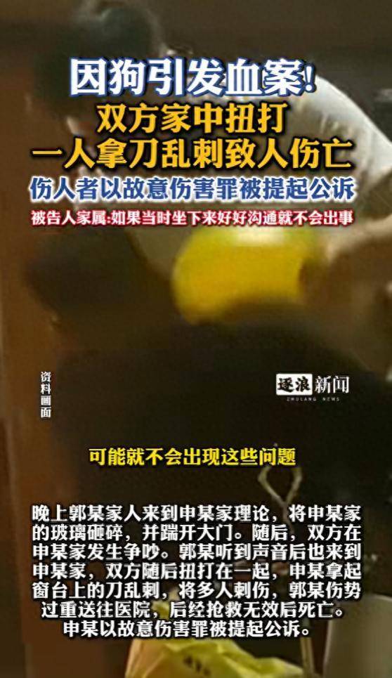 晚上郭某家人来到申某家理论,将申某家的玻璃砸碎,并踹开大门。随后,双方在申某家发生争吵。郭某听到声音后也来到申某家,双方随后扭打在一起,申某拿起窗台上的刀乱刺,将多人刺伤,郭某伤势过重送往医院,后经抢救无效后死亡。申某以故意伤害罪被提起公诉。(逐浪新闻)