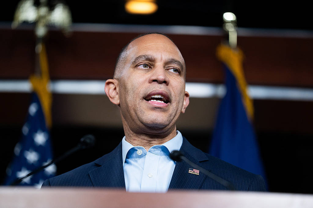 当地时间2025年10月30日,美国华盛顿,美国国会大厦,美国众议院少数党领袖哈基姆·杰弗里斯接受媒体采访。美国政府停摆已进入第30天,成为美国历史上第二长的政府全面停摆事件。视觉中国 图