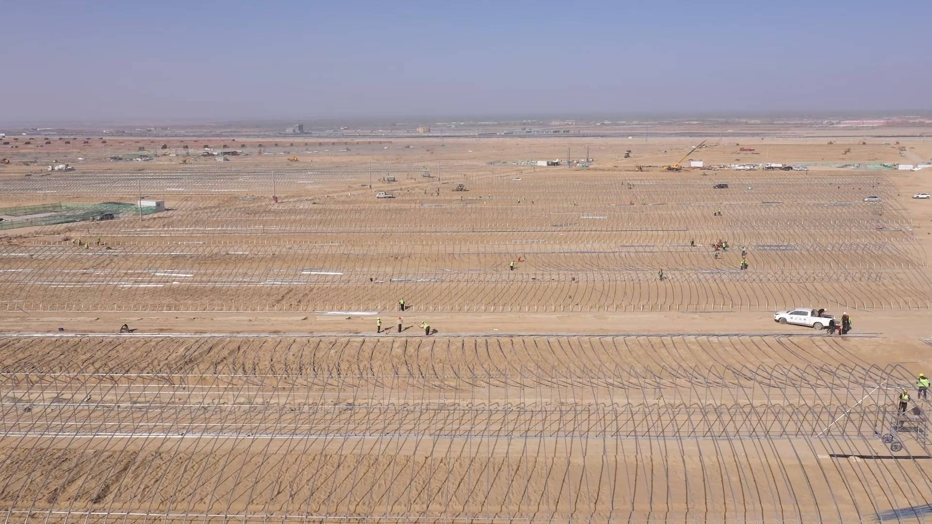 近日,新疆墨玉县现代农业产业园内,万亩戈壁(沙漠)现代设施农业及配套建设项目施工现场机器轰鸣,各施工工序有序推进,一派繁忙景象。