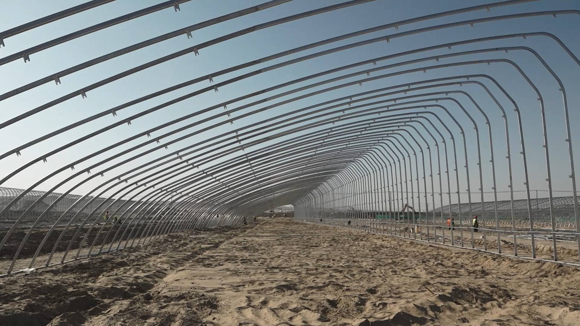 新疆农牧投集团联强农业公司党委委员、副总经理赵姜威介绍,新疆农牧投集团万亩戈壁(沙漠) 设施农业项目于今年8月8日正式开工,截止目前,主体工程已完成65%,预计今年年底交付使用。