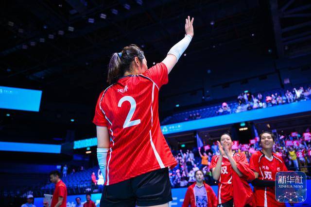 ↑ 河南队球员朱婷在赛后向观众致意。